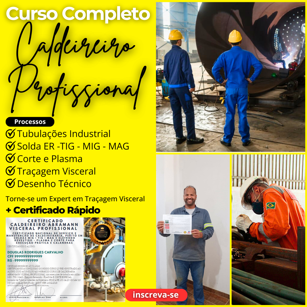 🔥 A indústria está sempre em busca de profissionais capacitados, e o Curso Completo de Caldeireiro Profissional é a oportunidade ideal para você conquistar espaço nesse setor.